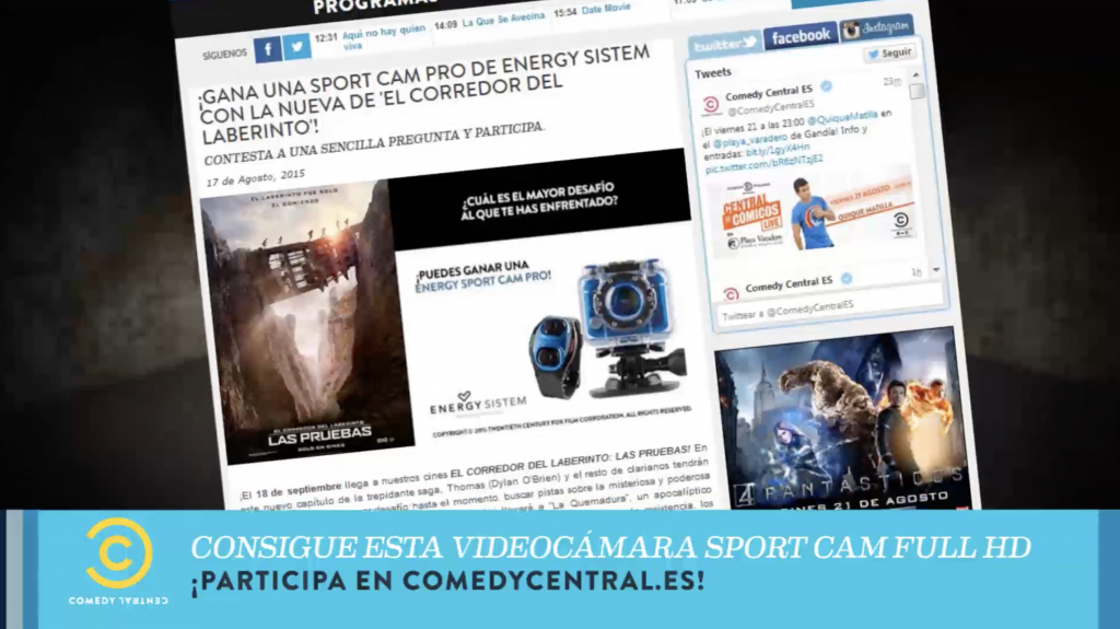 Promotional competition for the movie The Maze Runner for Comedy Central. Video montage of the movie trailer and 3D animation of the prizes offered in the contest.